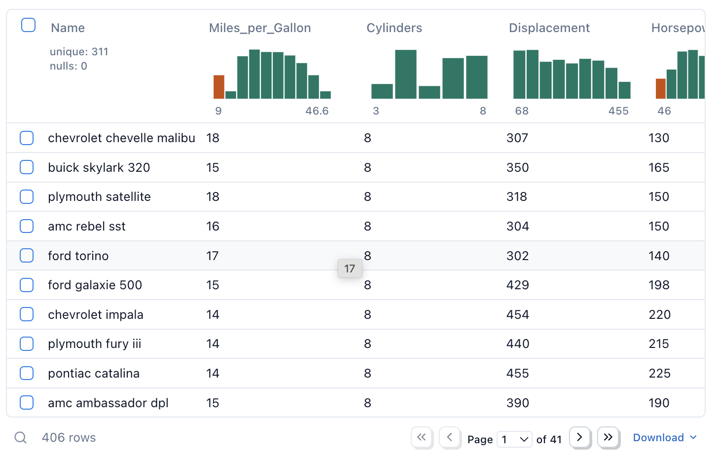 Display dataframes in a rich, interactive table and chart views